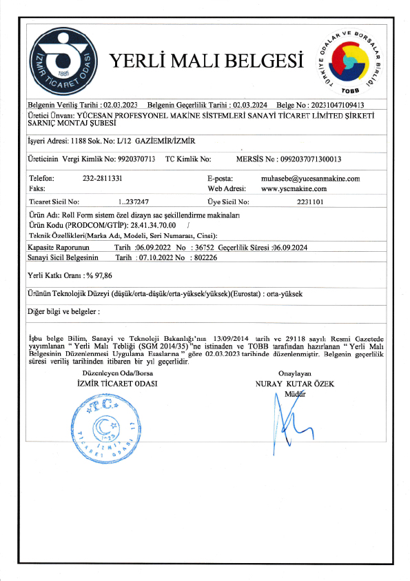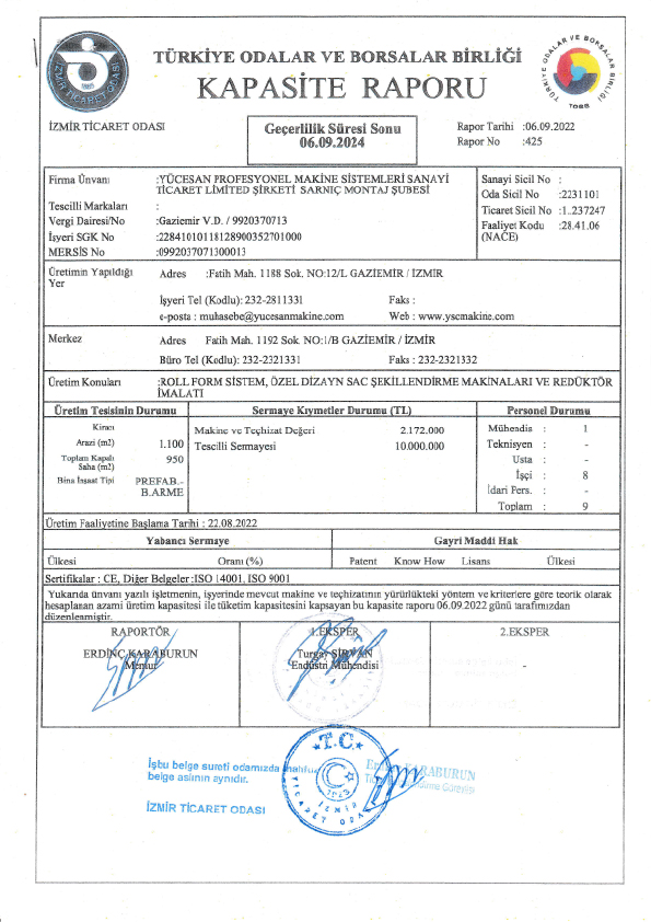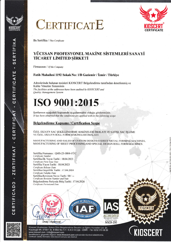 Türkiye’nin önde gelen profil firmalarından olan Yücesan Makine 2003 yılında İzmir’de kurulmuş olup, 23 yılı aşkın tecrübesi ve uzman kadrosuyla tüm teknolojik gelişmelerin takipçisi ve uygulayıcısıdır. İlk kurulduğu günden bugüne kadar ürettiği makineleri Türkiye ve dünya pazarına sunan firmamız, markasını sektöründe üst sıralara taşımayı başarmıştır.